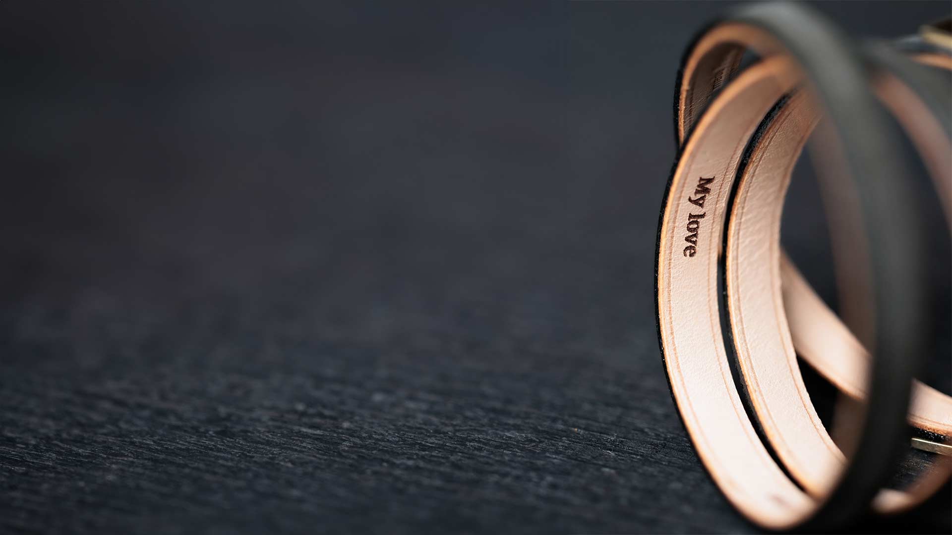 Unas pocas palabras grabadas, un cuero elegido, una joya pensada para decir lo esencial.